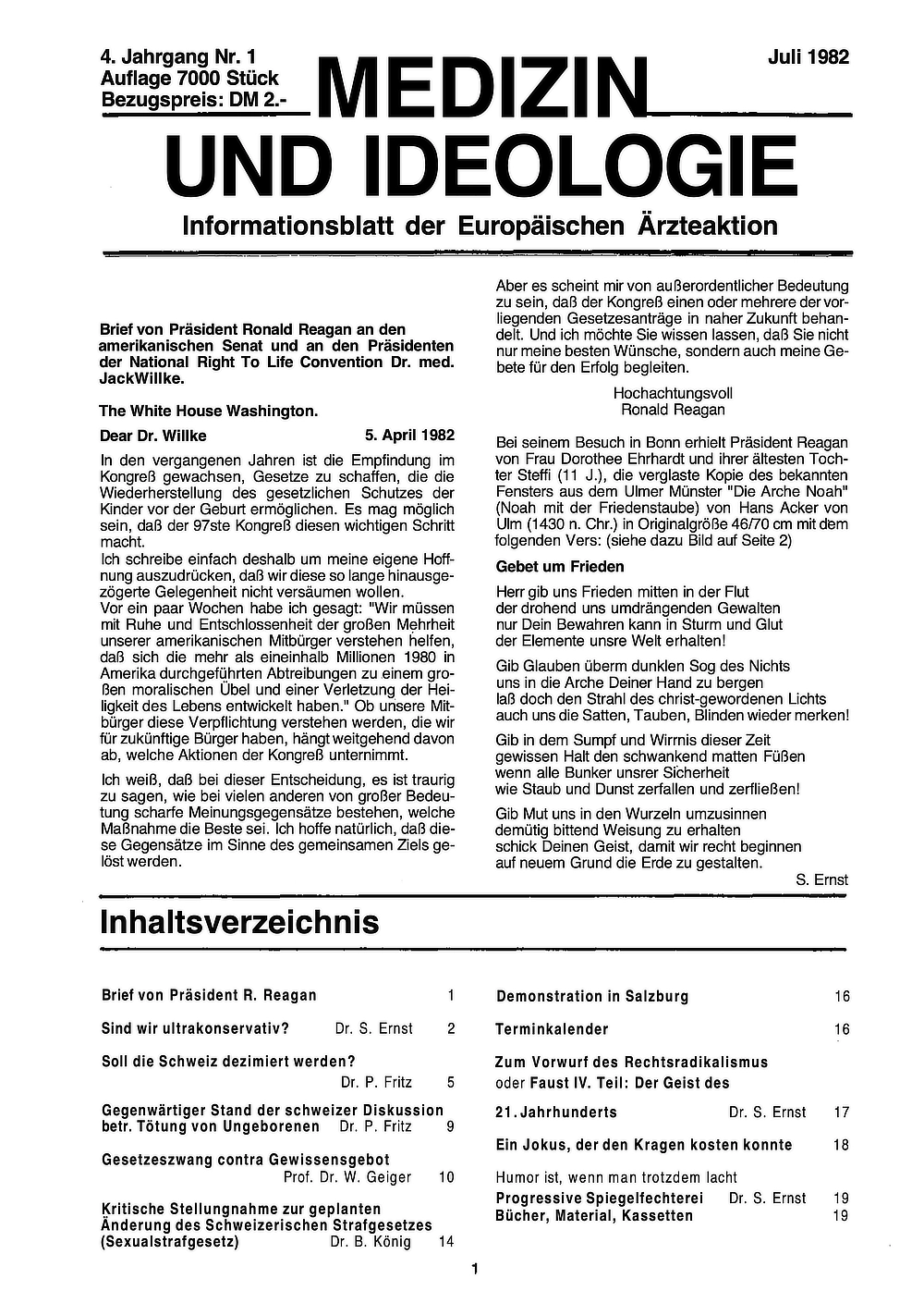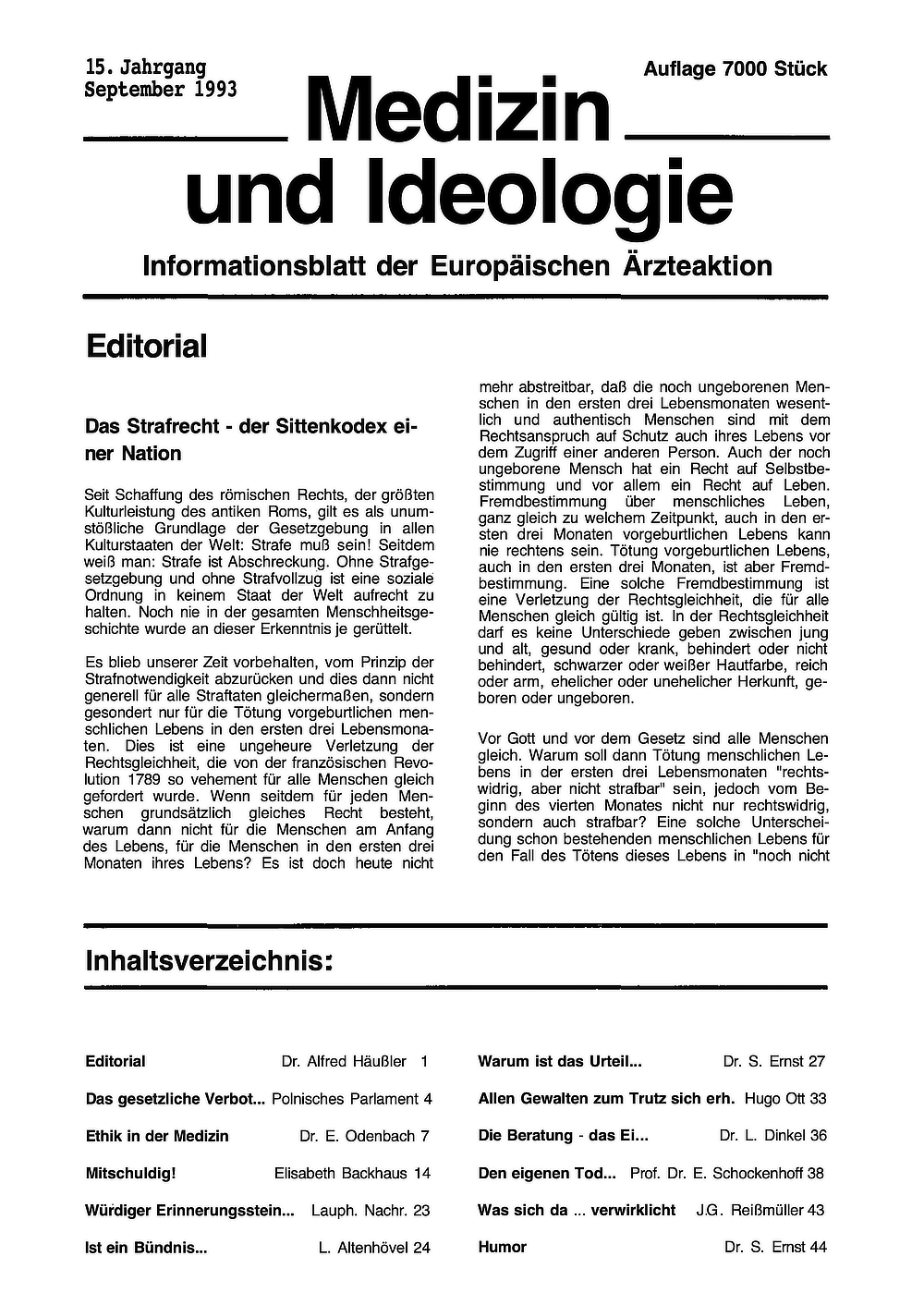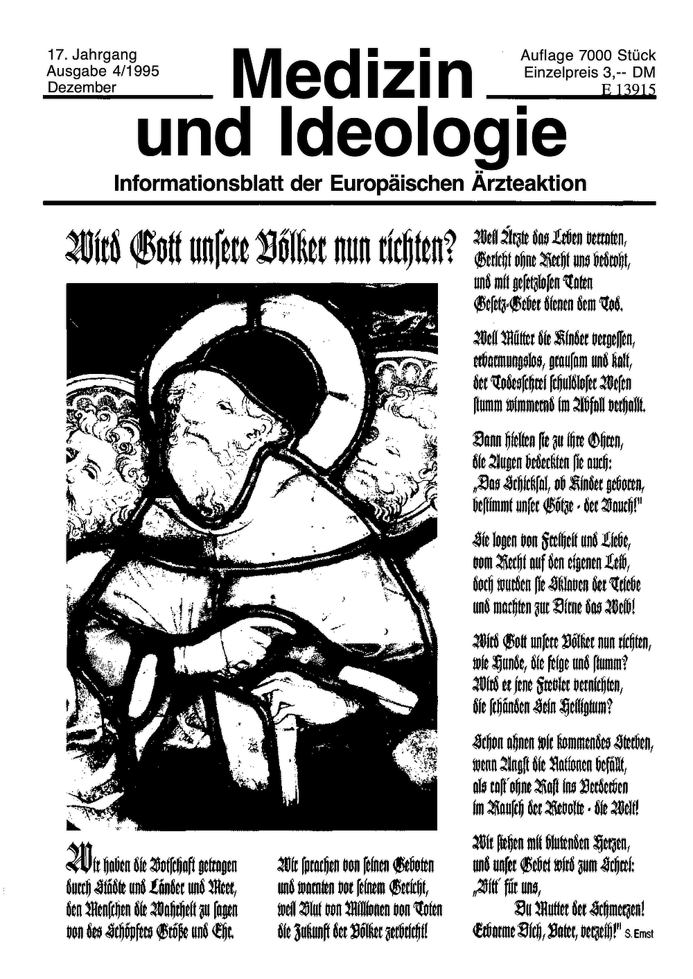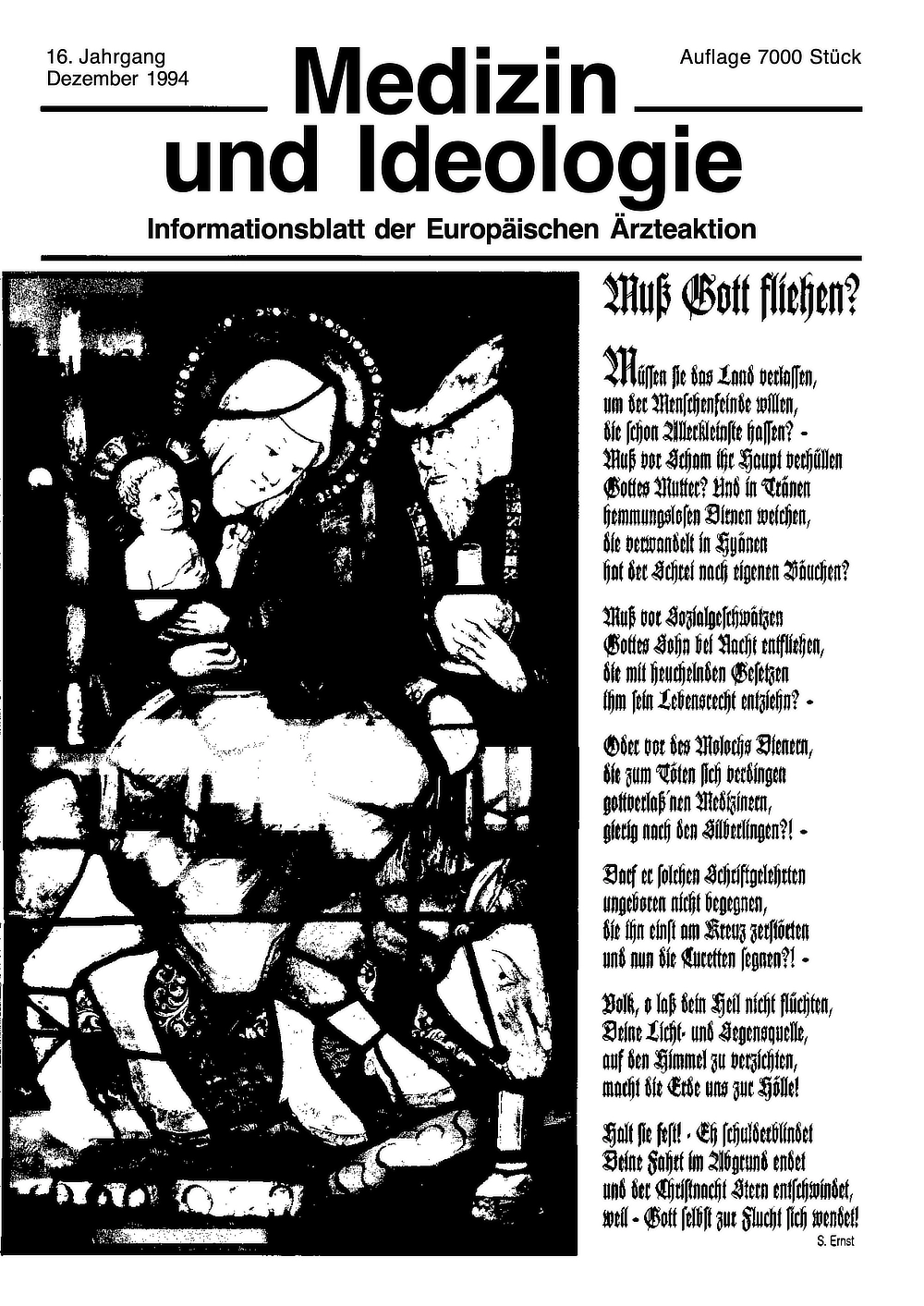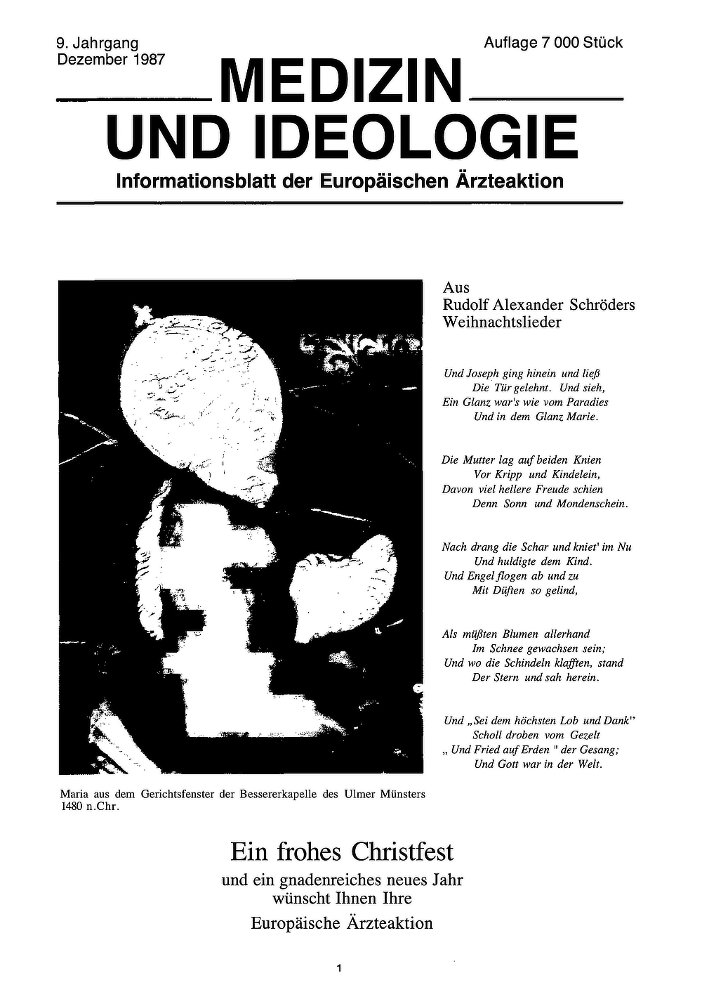 Dabei gibt der Name Medizin und Ideologie immer mal wieder Anlaß zur Nachfrage, denn häufig versteht man unter „Ideologie" eine eher willkürliche, sachlich nur teilweise begründete und verzerrte Wahrnehmung und Interpretation der Realität. Doch der Begriff „Ideologie" bedeutet wörtlich die „Lehre von den Ideen" und die Ausformung einer konkreten weltanschaulichen Perspektive im Sinne eines schlüssigen Ideensystems. Und so dient diese Zeitschrift dem Anliegen, die medizinisch-ethischen Grenzfragen im Kontext der sie beeinflussenden weltanschaulichen Ideen darzustellen und zu verstehen.