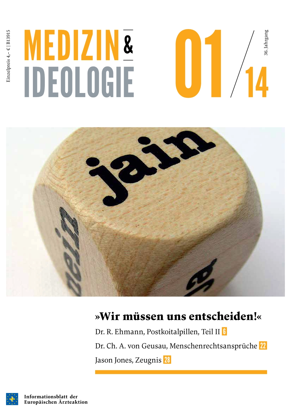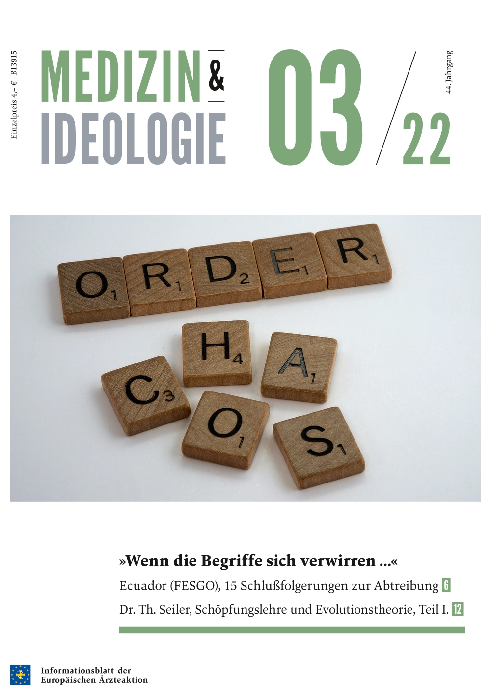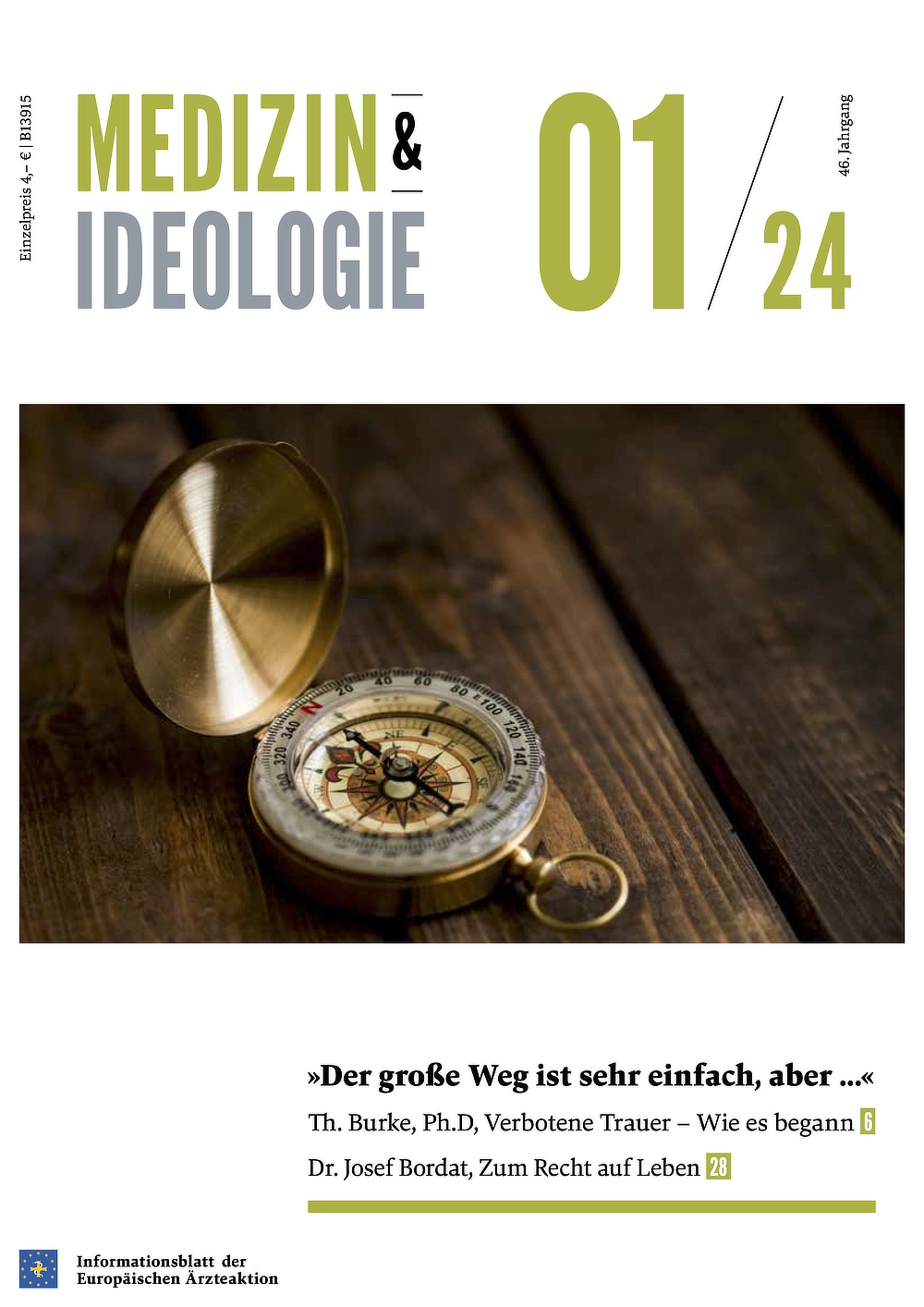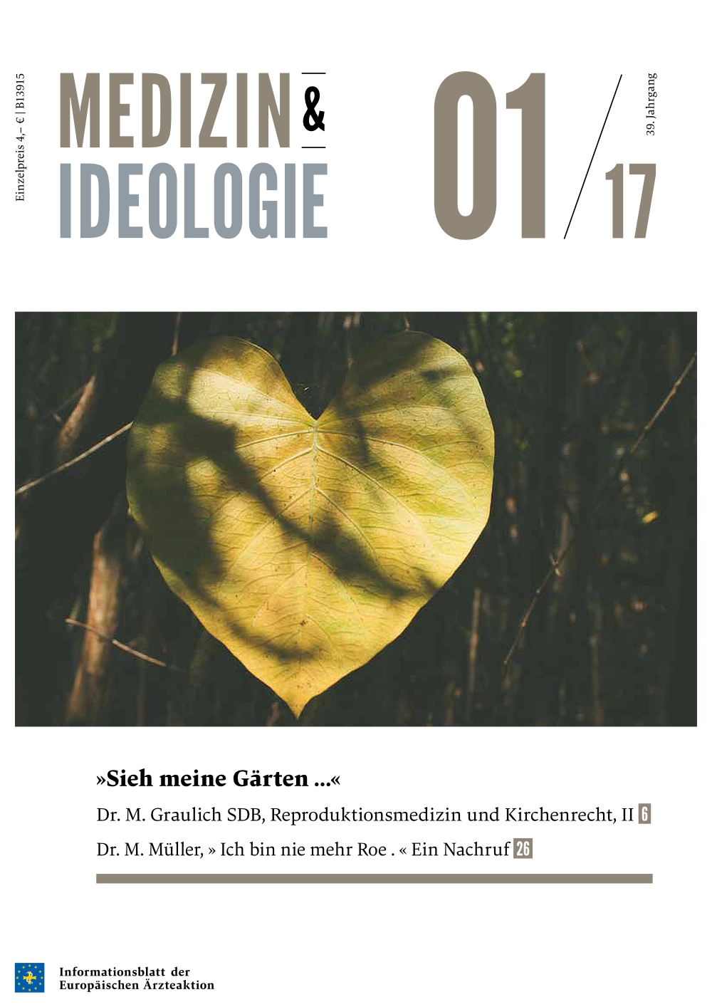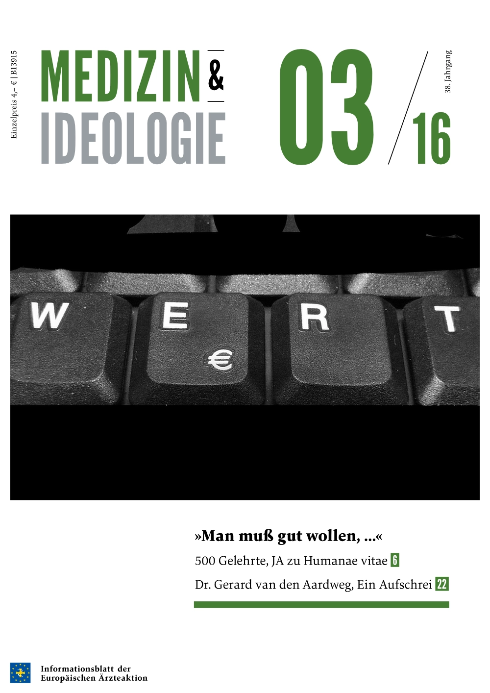 Unsere Zeitschrift Medizin und Ideologie bietet Beiträge von Autoren verschiedener Disziplinen zu den vielfältigen bioethischen und anthropologischen Fragestellungen. Denn diese betreffen nicht nur die Medizin und die Ärzte, sondern die Gesellschaft insgesamt. Und ihre Einschätzung und Lösung braucht sowohl fachliches Wissen wie eine stimmige geistige Orientierung.