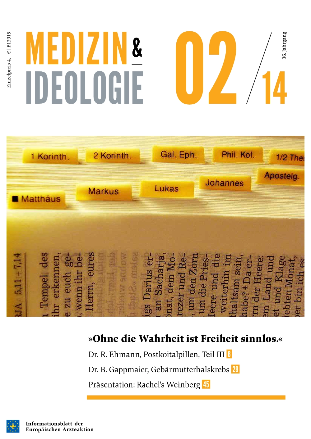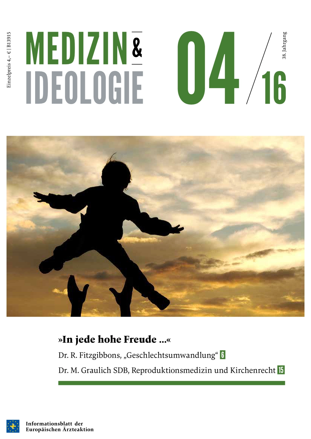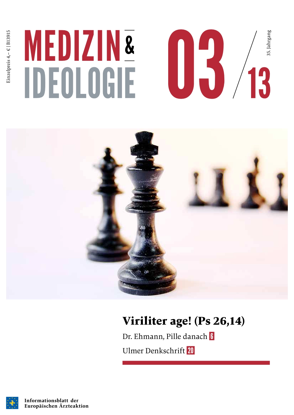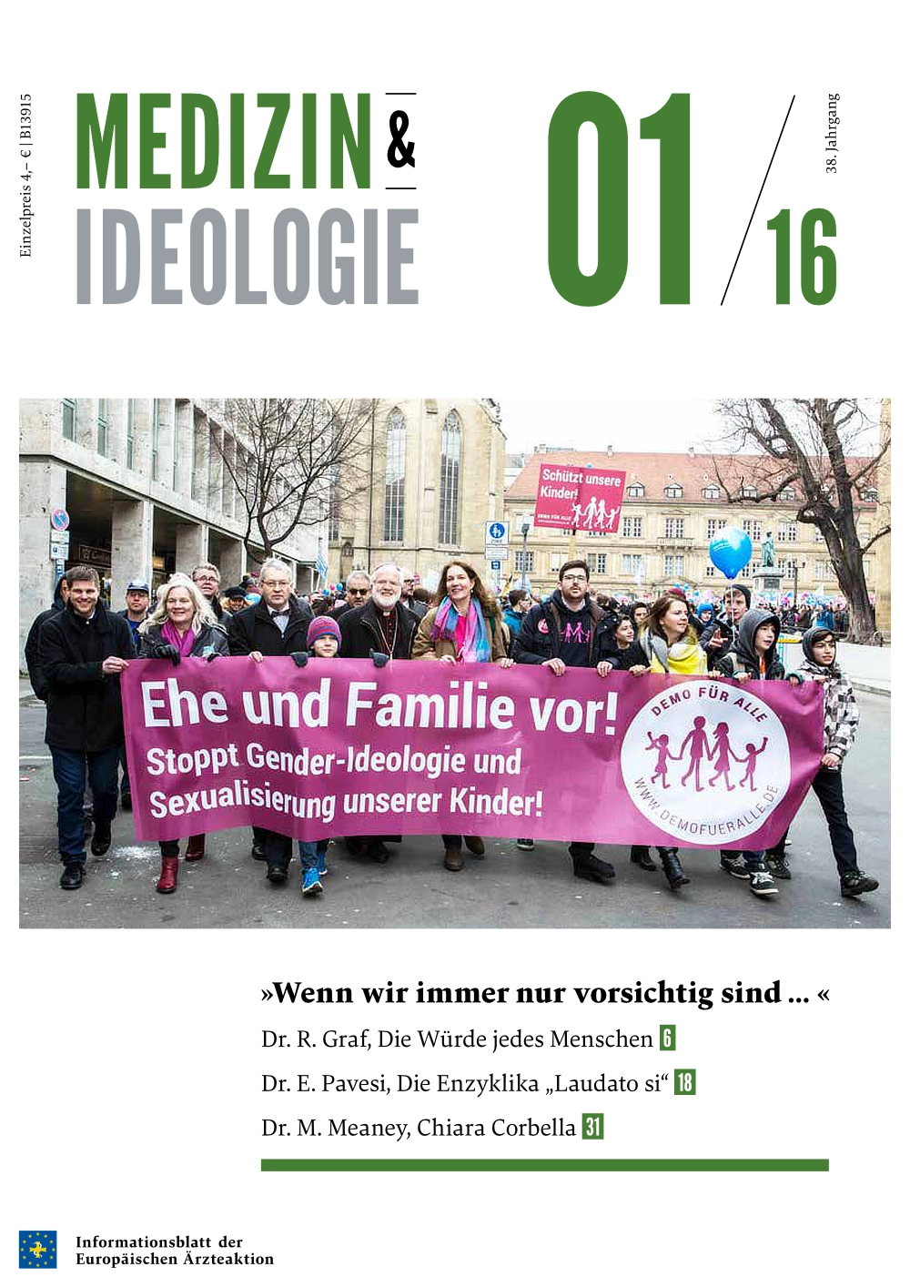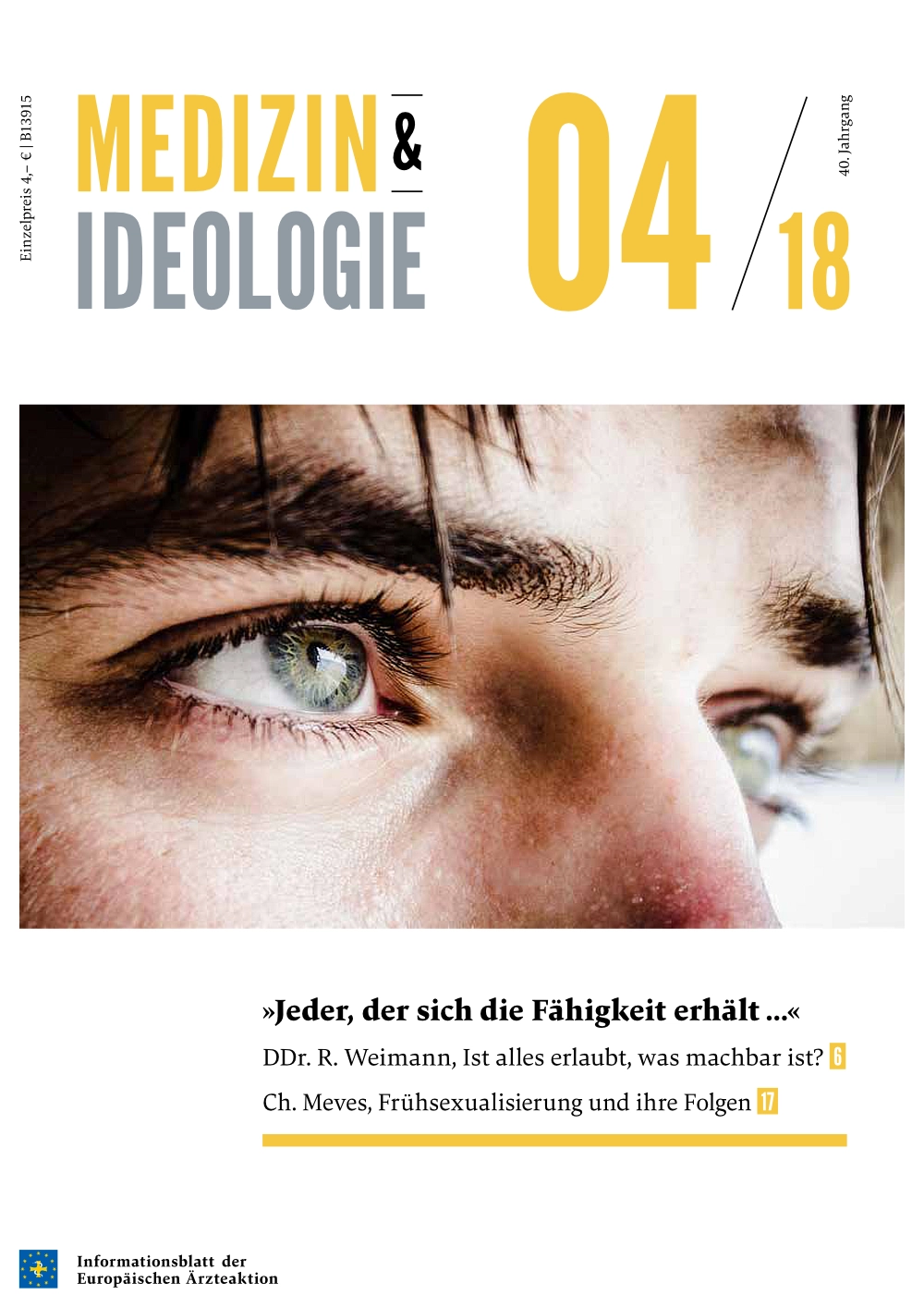 Unsere Zeitschrift Medizin und Ideologie bietet Beiträge von Autoren verschiedener Disziplinen zu den vielfältigen bioethischen und anthropologischen Fragestellungen. Denn diese betreffen nicht nur die Medizin und die Ärzte, sondern die Gesellschaft insgesamt. Und ihre Einschätzung und Lösung braucht sowohl fachliches Wissen wie eine stimmige geistige Orientierung.