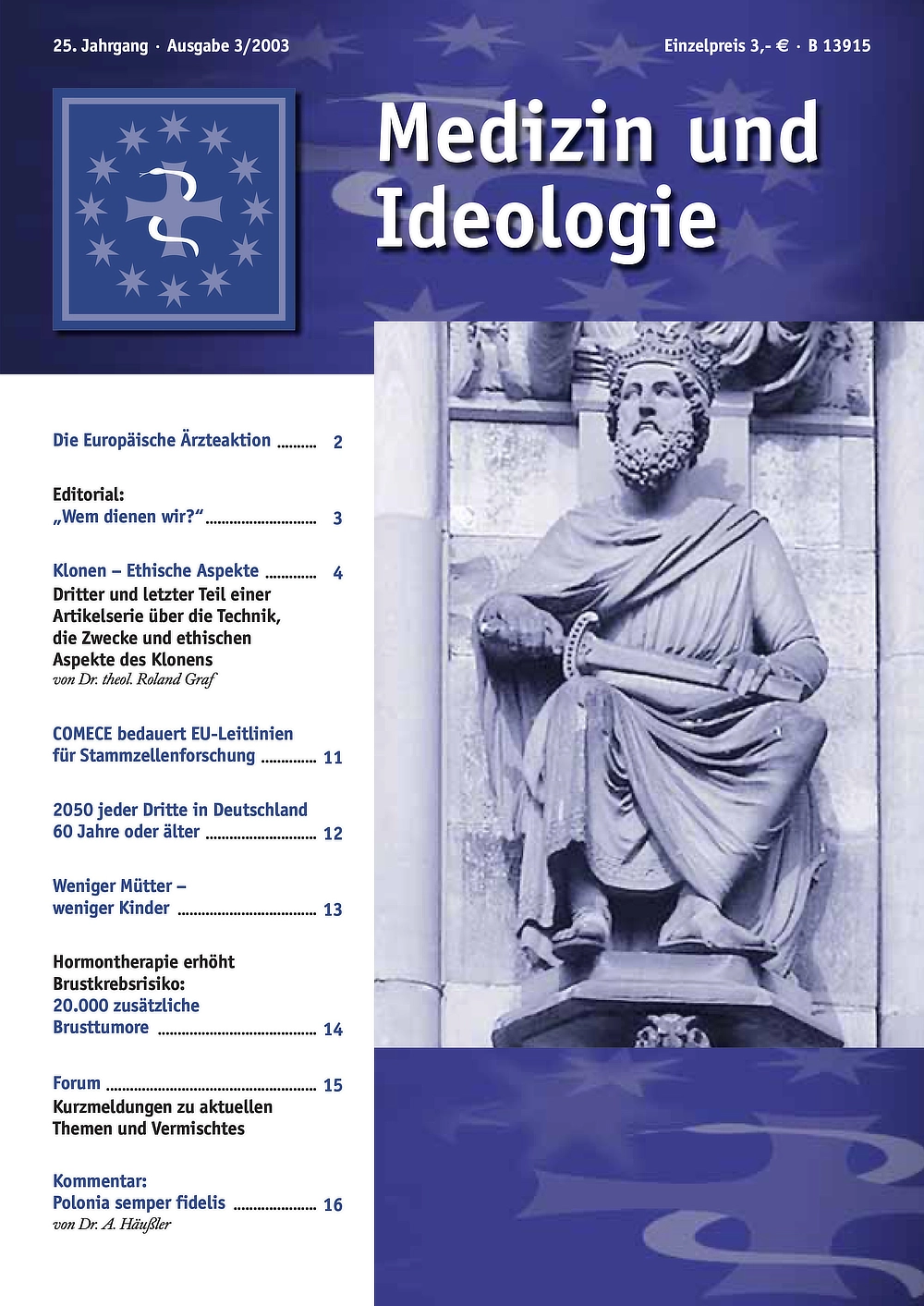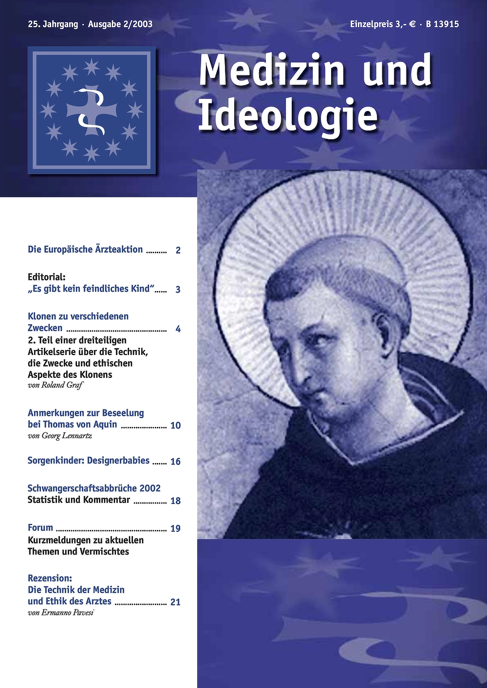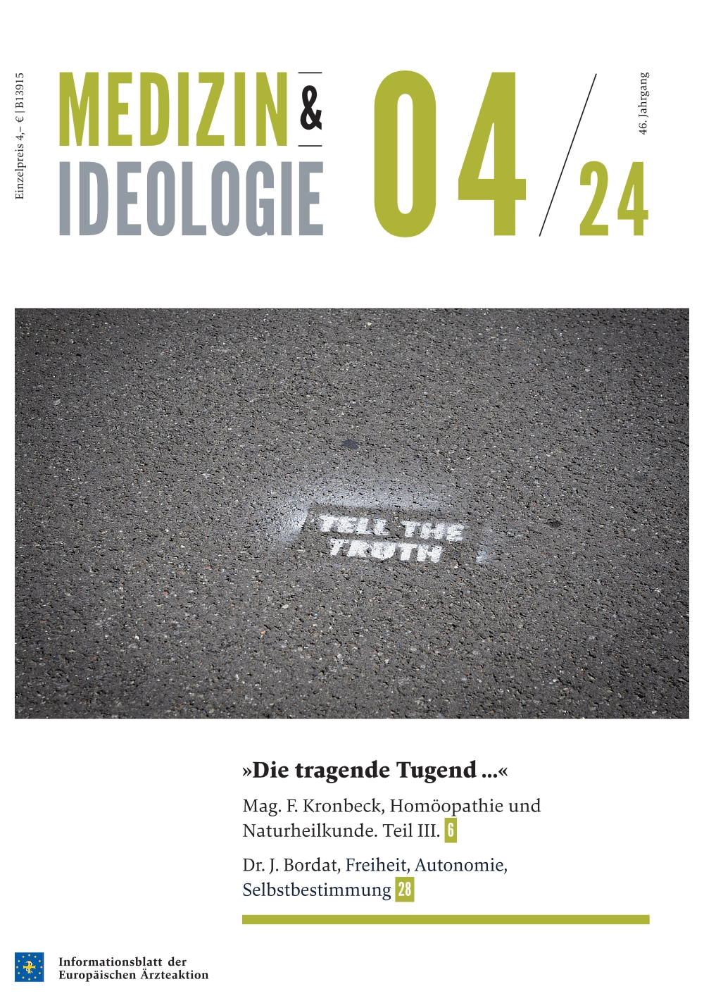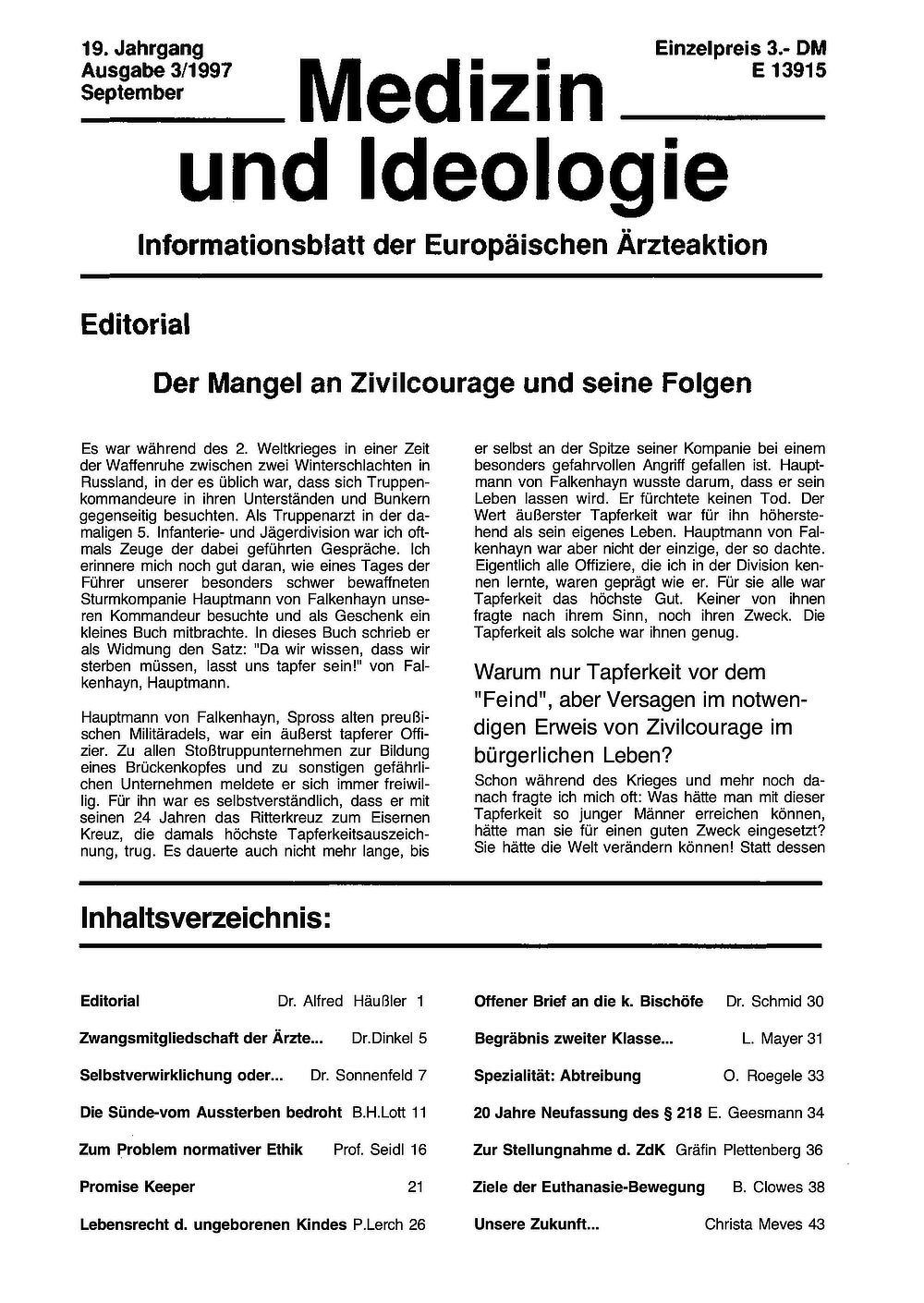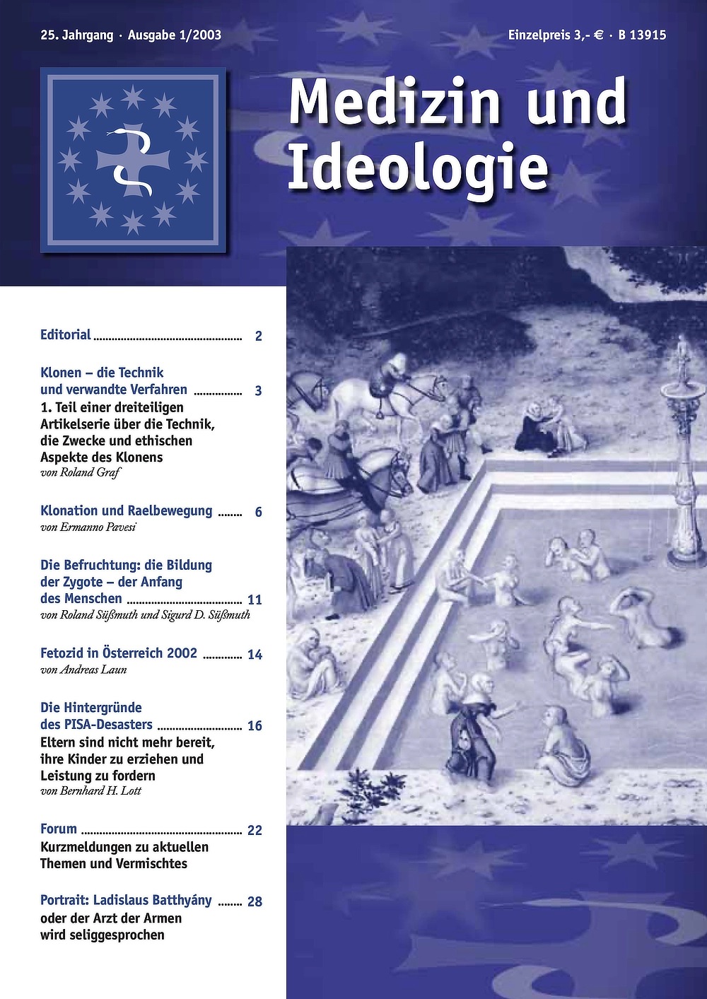 Unsere Zeitschrift Medizin und Ideologie bietet Beiträge von Autoren verschiedener Disziplinen zu den vielfältigen bioethischen und anthropologischen Fragestellungen. Denn diese betreffen nicht nur die Medizin und die Ärzte, sondern die Gesellschaft insgesamt. Und ihre Einschätzung und Lösung braucht sowohl fachliches Wissen wie eine stimmige geistige Orientierung.