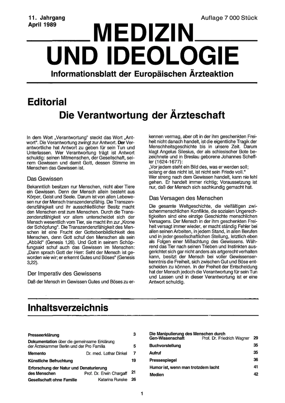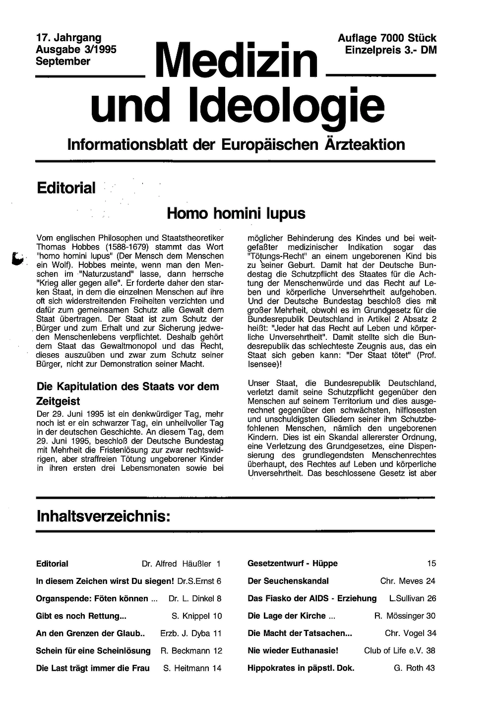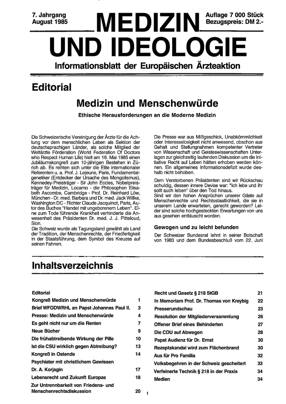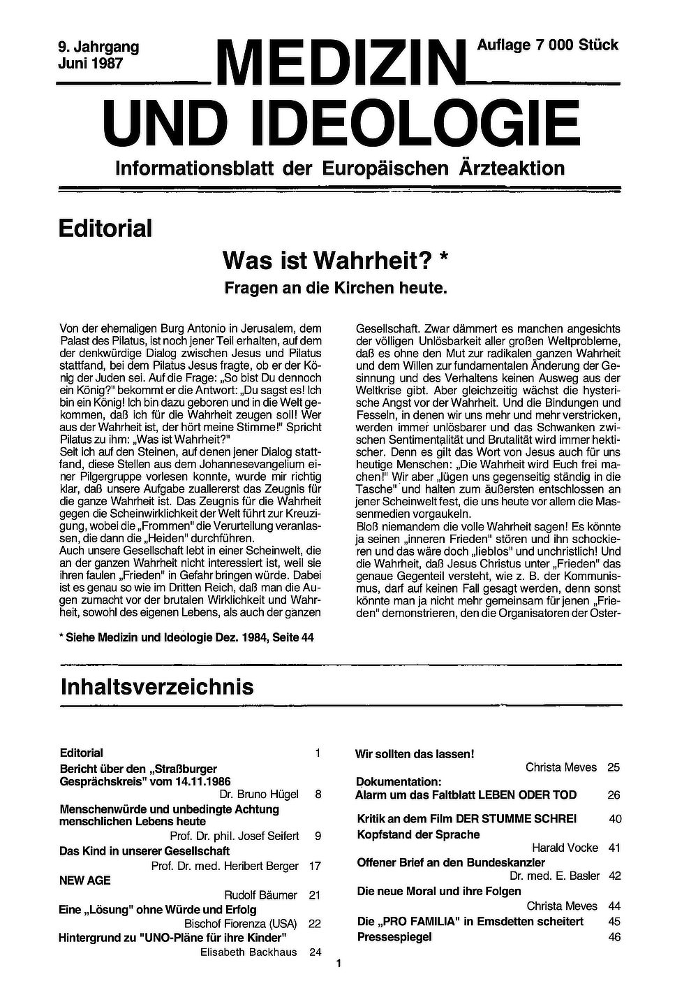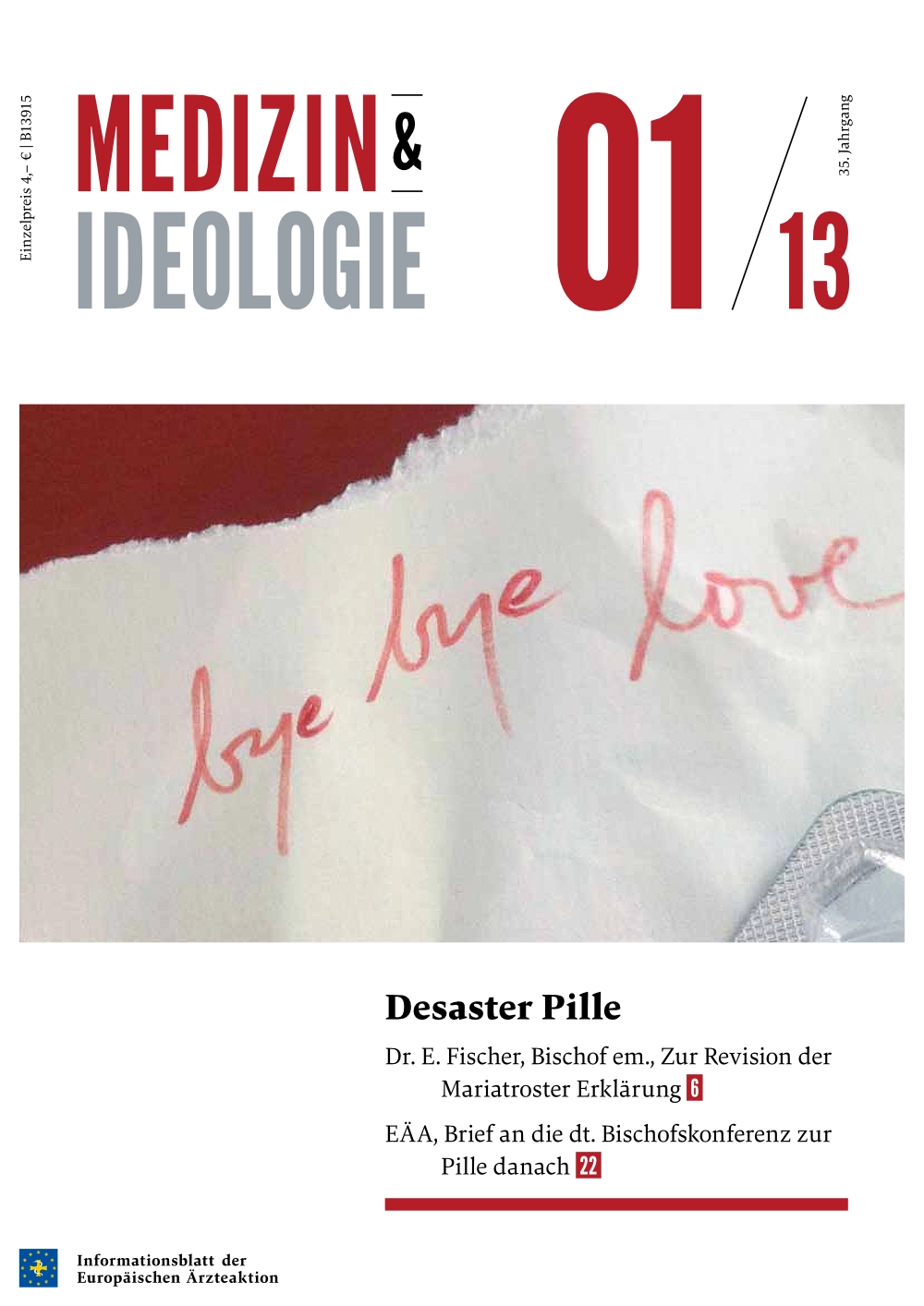 Unsere Zeitschrift Medizin und Ideologie bietet Beiträge von Autoren verschiedener Disziplinen zu den vielfältigen bioethischen und anthropologischen Fragestellungen. Denn diese betreffen nicht nur die Medizin und die Ärzte, sondern die Gesellschaft insgesamt. Und ihre Einschätzung und Lösung braucht sowohl fachliches Wissen wie eine stimmige geistige Orientierung.